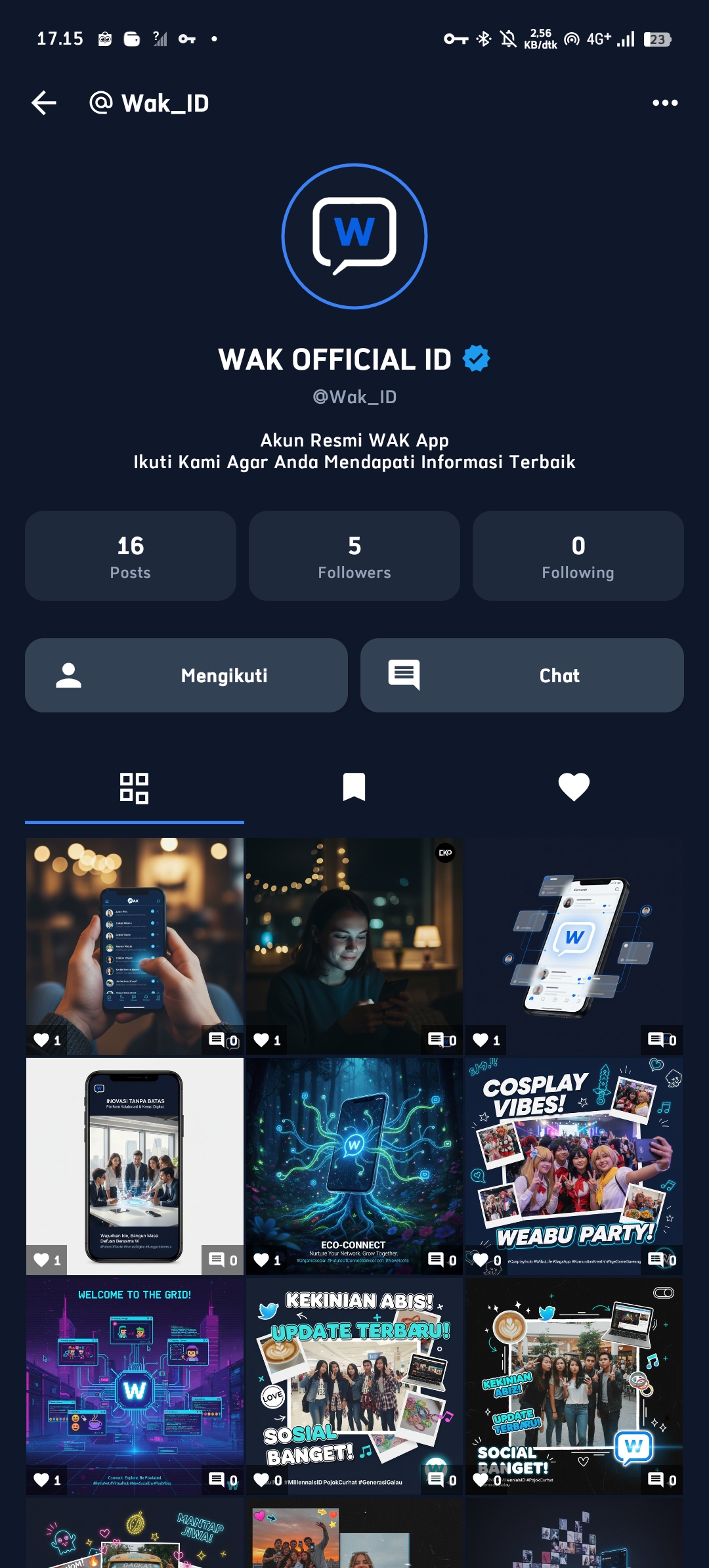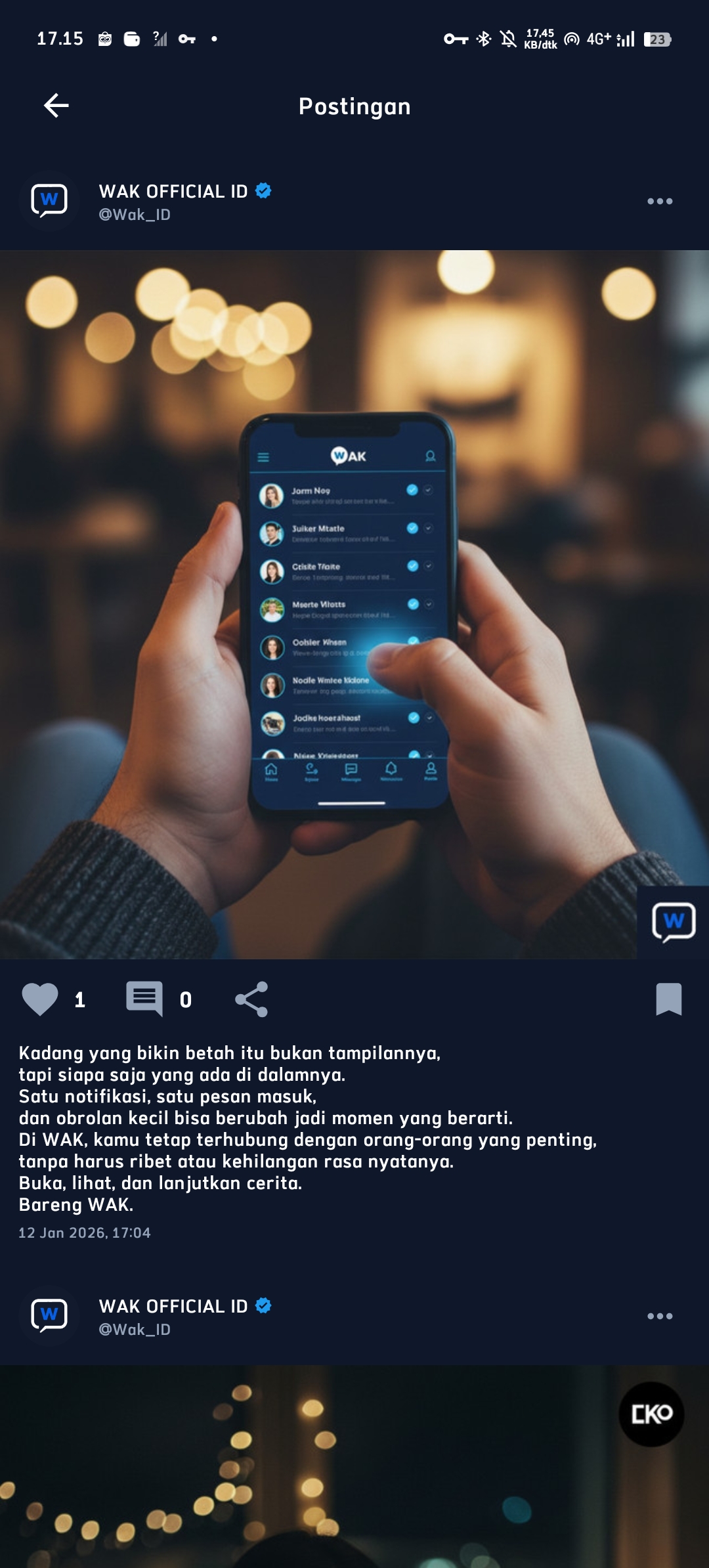 WAK adalah aplikasi sosial media santai untuk berbagi momen dan terhubung dengan teman tanpa fitur yang membingungkan.